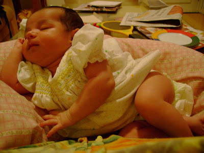 Mathilde ficou com uma febrinha, reação da vacina dos dois meses.